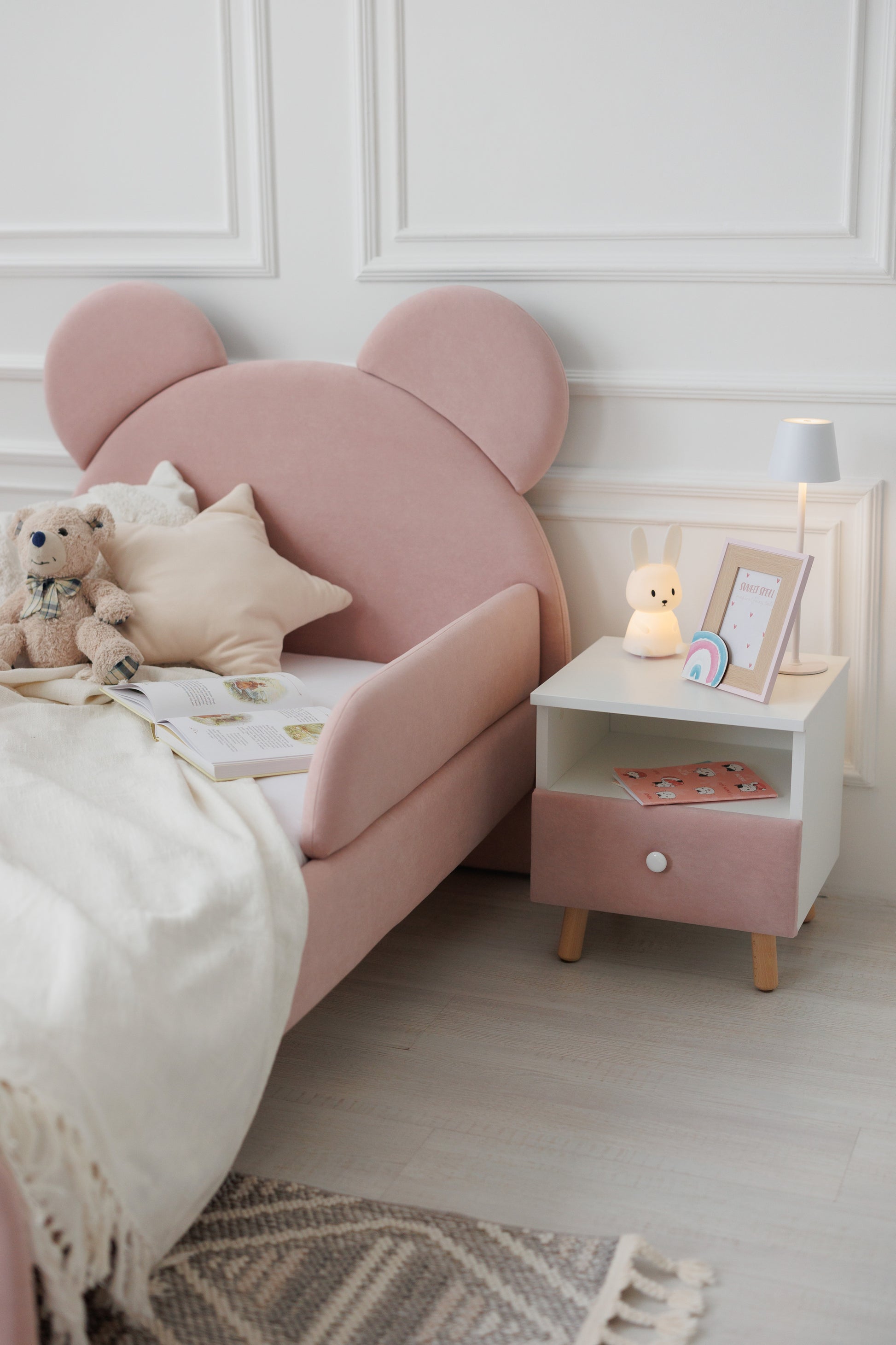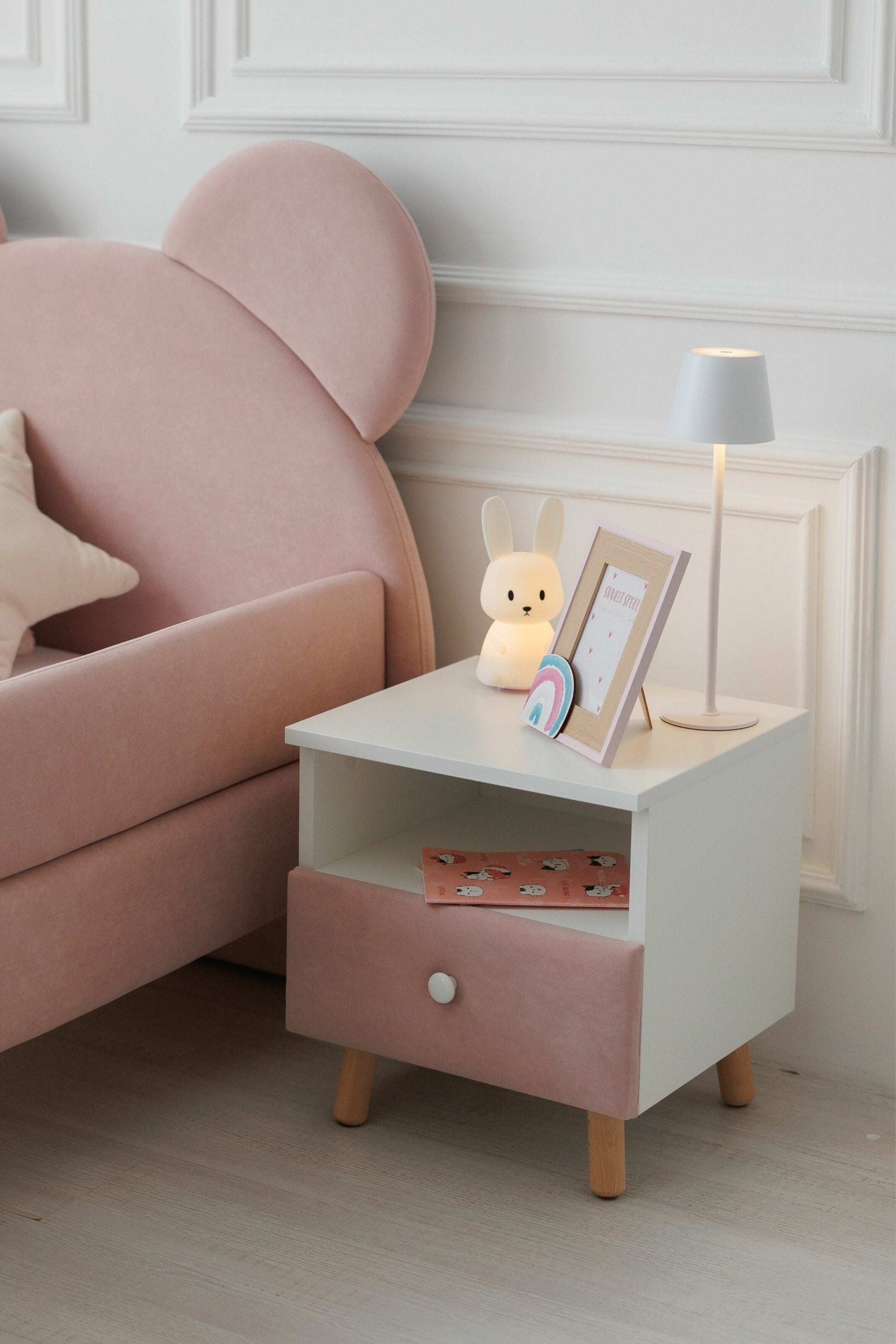 Create a cozy corner in your child's room. Transform your little one's space with the elegant Dreamer bedside table. Crafted with premium materials, it seamlessly blends European design with practical functionality: